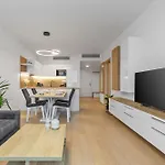 New Modern 2 Bedrooms Apartment In Bratislava ferielejlighed har værelser med klimaanlæg, en balkon og en spiseplads. For bekvemmelighed er der et badekar og badehånklæder i hvert badeværelse.